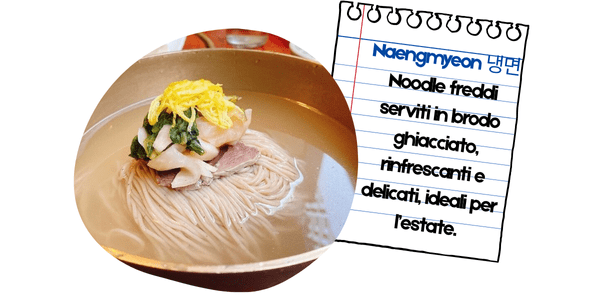 | Jin | Naengmyeon – noodles freddi in brodo ghiacciato, freschezza estiva. | piatto estivo | Rinfrescante |