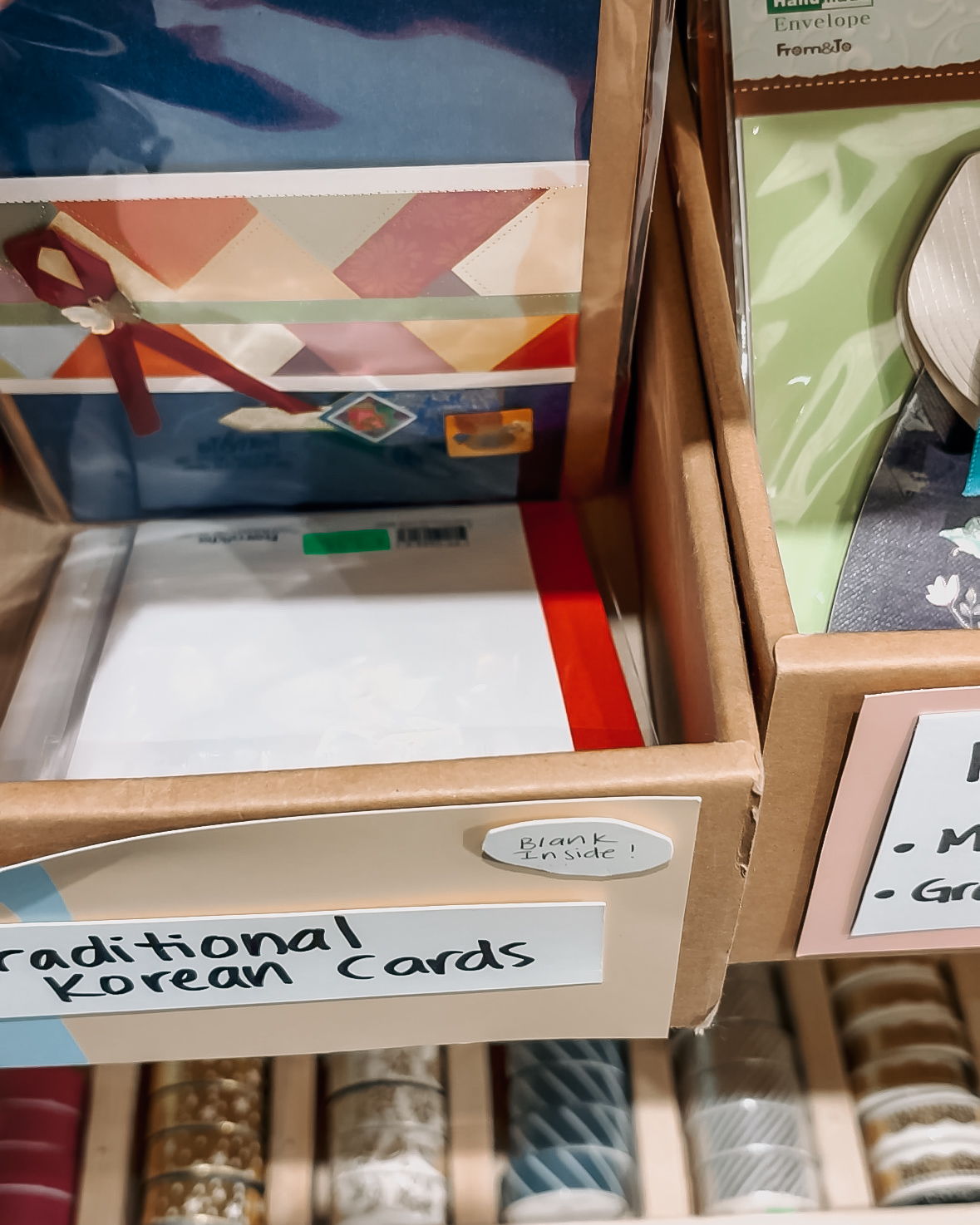 Sebbene oggi Hanji Gifts si presenti come una cartoleria moderna e vivace — come testimoniano i coloratissimi scaffali pieni di portachiavi di Miffy, miniature di gattini e charms trendy per borse — il legame con la tradizione è sempre presente. Tra un gadget K-Pop e un set di stickers, è possibile scorgere la delicatezza delle carte tradizionali e delle “Traditional Korean Cards” che mantengono viva l’arte della Hanji.